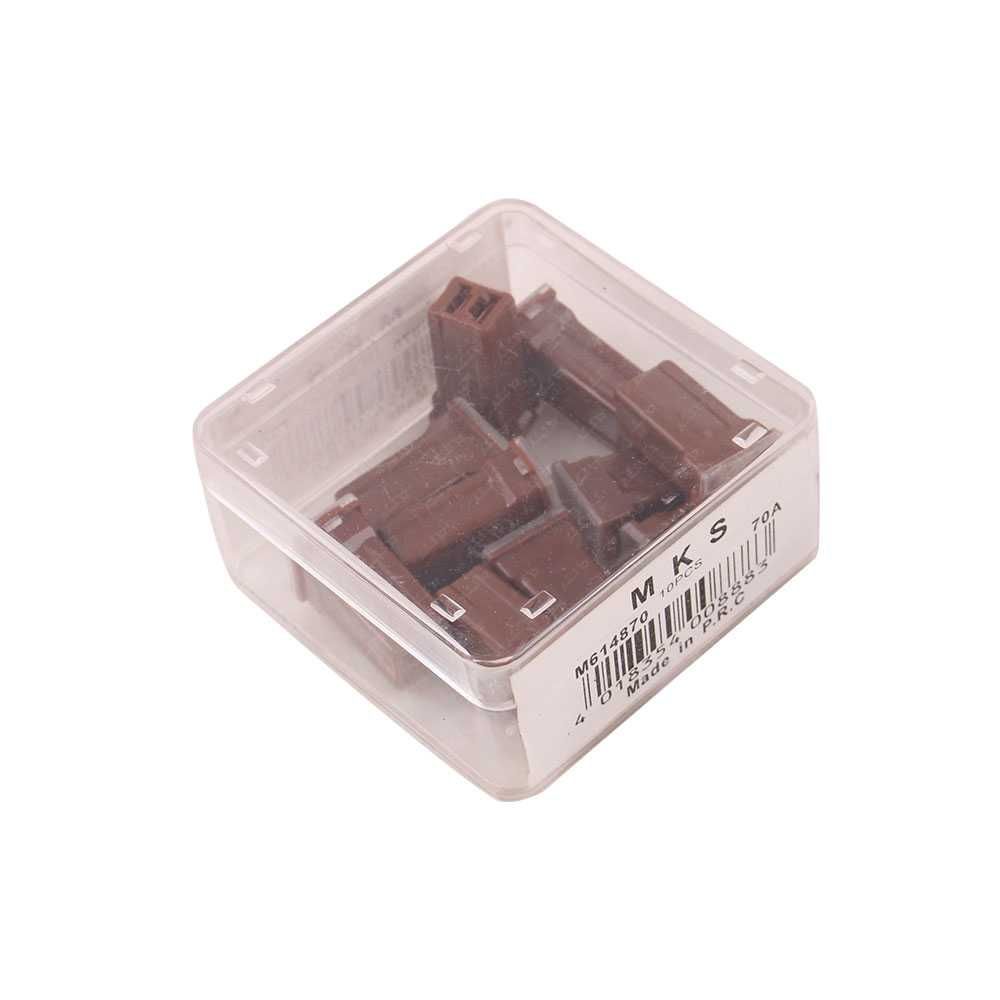 این محصول توسط شرکت MKS با بهترین مواد جهت مقاومت در برابر جریان و حرارت و ذوب تولید شده است،فیوز های ام کا اس دارای کیفیت بالا میباشند،این محصول به رنگ قهوه ای به معنای هفتاد آمپر میباشد.